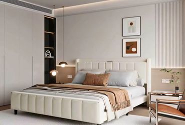 New Modern QUEEN & KING SIZE BED FRAME UPHOLSTERED W/ HEADBOARD AND USB Outlet, Beige AND Gray $120City Of Industry, CA
