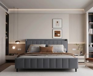 New Modern QUEEN & KING BED FRAME Upholstered W/ Headboard & USB Outlet. Grey & Beige Color Available $120City Of Industry, CA