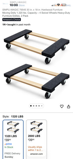 SIMPLI-MAGIC Furniture Moving Dolly 2-Pack (1,320 lbs Capacity)$20Los Angeles, CA