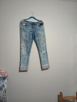 Ladies Jeans - Arizona Size 18 - Acid Washed, Embellished Hem, 5 Pockets And Distressed Designs $15Pinellas Park, FL