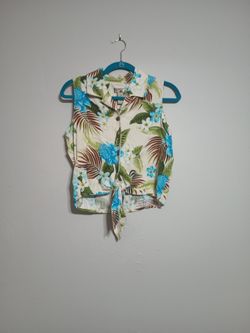 Sleeveless Summer Blouse. Caribbean Joe Size L. Cream Teal And Green Tropical Flowers $20Pinellas Park, FL