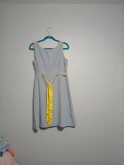 Kim Rogers - Delicate Gray And White Summer Dress With Bright Yellow Accents. Delightful And Modest, Size 16$30Pinellas Park, FL