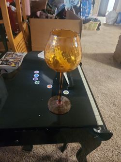 Vintage Amber Empoli Optic Glass Pedestal Vase Goblet $20Roseville, MI