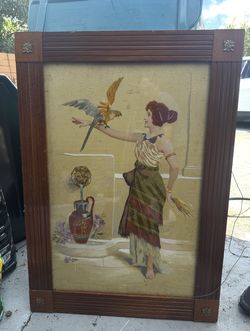 Vintage Antique Wooden Frame with textile embroided Antique Painting $70Miami, FL