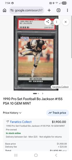 Bo Jackson 1990 card #155 official NFL pro set$700Gorst, WA