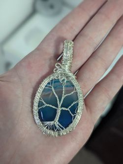 Tree Of Life Blue Agate Sterling Silver Wrapped Pendant $23Beaver Meadows, PA