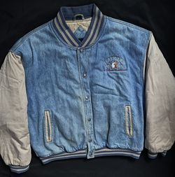Vintage distressed tri mountain denim varcity jacket $30Green Bay, WI