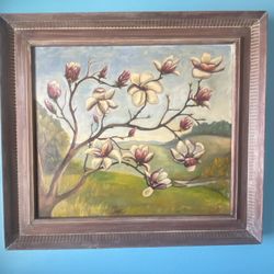 Large 38x34 Vintage Floral Oil Painting - Framed Tropical Vibe Art$150Las Vegas, NV