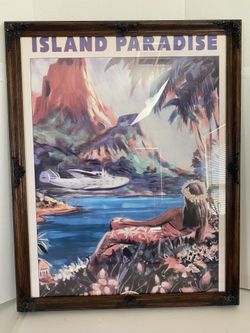 Vintage "ISLAND PARADISE" Travel Poster Art - Large 27x34 Framed Hawaii Vibe$40Las Vegas, NV