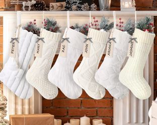 6 Pack White Cable Knit Christmas Stockings 18'' Large Faux Fur Plush Hanging Xmas Stocking with Name Tag Farmhouse$15Peoria, AZ
