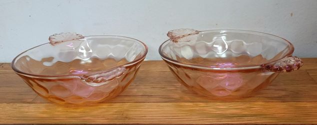2 Vintage Pink Depression Glass Berry Bowls with Shell Handles w/Center Flower$10Independence, MO