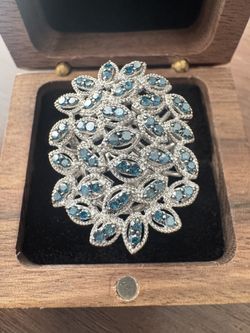 Sterling Silver ~1/2CTW Blue Diamond Cluster Statement Ring Size 7.25$269Houston, TX