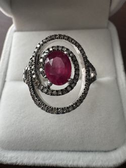 925 Sterling Silver ~8x6mm Ruby & ~1/2CTW Diamond Swirl Ring Size 11$297Houston, TX