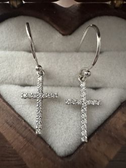 14K White Gold ~1/5CTW Diamond Cross Dangle Earrings $297Houston, TX