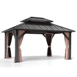 16 ft. W x 12 ft. D Outdoor Galvanized Steel Black Double Roof Patio Gazebo $900 brand new in box Warehouse Clearance Sale 🔥First Come, First Serv$900Irmo, SC