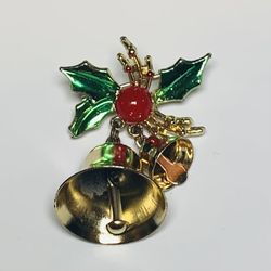 Vintage Double Brass Ringing Bells Enameled Holly Brooch Pin Christmas Holiday Season USED$30Chicago, IL