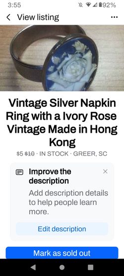 vintage silver napkin ring w an ivory rose$5Greer, SC
