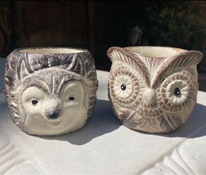 Set of 2 Cute Happy Owl and Hedgehog Small Plant Pot Succulent Heavy Cement Planters$12Clovis, CA