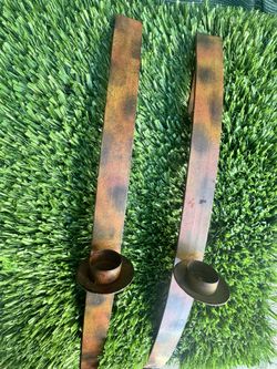 Two Vintage Custom Decorator Candle Holders Made From Gilded Leaf Springs With Attached Wall Mounts)$85Alhambra, CA