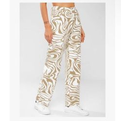 ZAFUL High Waisted Psychedelic Print Straight Jeans Tan White Medium Cotton New$20Houston, TX