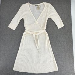 De Coded Sweater Dress Large Junior Acrylic Knit Made in USA Strap Belt Cream$18Houston, TX