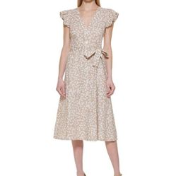 Tommy Hilfiger Linen Dress Size 10 Flutter Ruffle Sleeves V-Neckline Button$80Houston, TX
