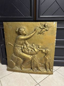 Neoclassical-style gilded plaster wall hanging, depicting a classical female figure with a basket of putti (cherubs), a dog, and anoth$300Fresno, CA