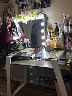 White And Grey Glass Top Vanity Table $120Tucson, AZ