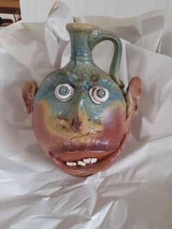 Vtg..Ugly Face..Handcarved Pottery Jug..Signed $120Largo, FL