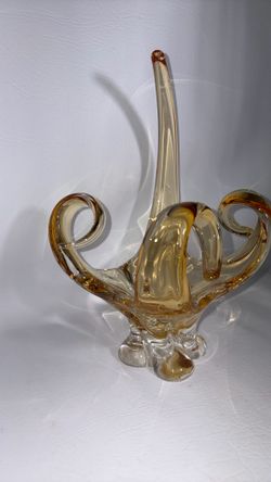 Vintage Lorraine Amber Chalet Art Glass Mid-Century 12” Tall Made in Canada Handmade$200Orange, CA