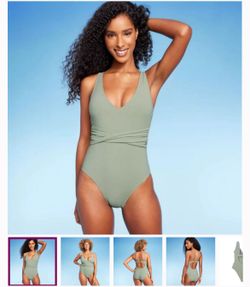 Women's Ribbed Plunge Twist-Front One Piece Swimsuit - Shade & Shore™ Green M$10Las Vegas, NV