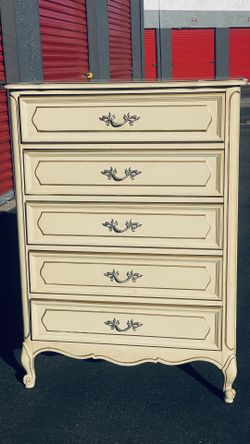 Vintage 5-Drawer Dresser crème color with gold trim. 33”W x 19”D x 47”H$200Huntington Beach, CA