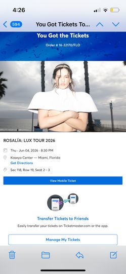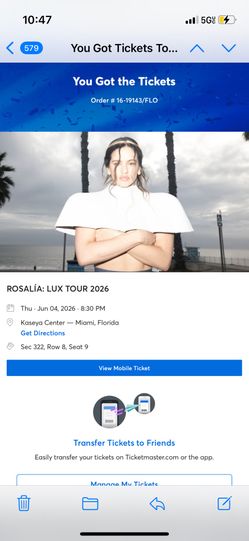 ROSALÍA Concert Ticket For Miami June 4th, From Ticketmaster$175Miami, FL