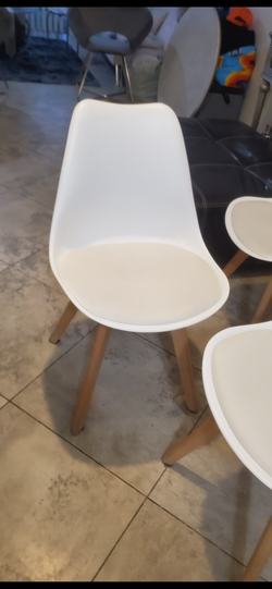 Set of 4 white dining chairs with wood legs$150Pembroke Pines, FL
