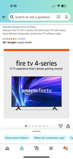 43in Amazon Fire TV 4-Series 4K UHD Smart TV w/ Alexa Voice Remote enhanced$180Fairfield, CA