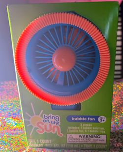 Bring on the Sun Bubble Fan! New! Includes 1 bubble solution, 1 bubble fan, and 1 bubble tray. Ages 3+. Located in Tarzana!$5Los Angeles, CA