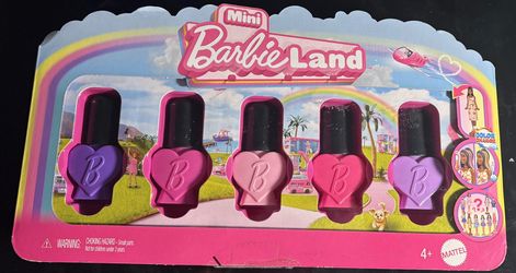 Set of 5 heart-shaped โNail Polishโ Containers with Hidden Mini Barbies! Suitable for ages 4+. Brand: Mattel. New! Located in Tarzana! $6Los Angeles, CA