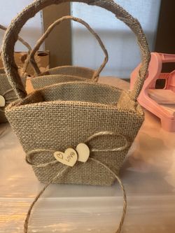 Set of 4 flower girl baskets -burlap fabric with wooden love heart new-rustic farmhouse glamorous$12Brea, CA