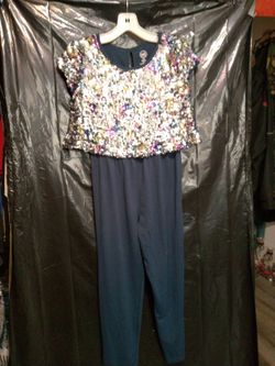 Wonder Nation Girls Sequin Popover Jumpsuit In Navy Blue With A Multi - Color Sequin Top. Size L/G ( 10 - 12 ). $10Fresno, CA