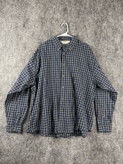Pre-owned Wrangler Hero men’s shirt in size 2XL. Navy blue with white checkered pattern, long sleeves, button-up front, and chest pocket.$16Littleton, CO