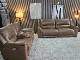 LIKE NEW Ashley Trasimeno 2 Power Reclining Loveseats with Console in Caramel Real Leather$1,700Olympia, WA