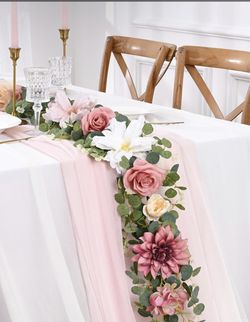 Waipfaru Flower Garland Decorations, 6.07Ft Pink Floral Rose Garland, Artificial Eucalyptus Greenery Vines With Flowers For Wedding Table Runner Cente$15Avondale, AZ