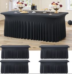 4 Pack Black Spandex Tablecloths For 6 Foot Rectangle Tables, Wrinkle Free Stretchy Table Clothes With Skirt For Weddings Birthday Party Banquet Baby $50Avondale, AZ