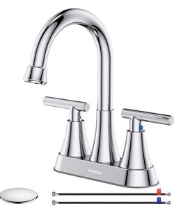 Bathroom Faucets For Sink 3 Hole, Hurran 4 Inch Chrome Bathroom Sink Faucet With Pop-Up Drain And Supply Hoses, Stainless Steel Lead-Free 2-Handle Cen$25Avondale, AZ