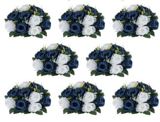 NUPTIO Artificial Flower Centrepieces For Tables - 8 Pcs Navy Blue & White Fake Flowers Roses Balls 9.5in Diameter - Silk Faux Rose Arrangement For We$40Tolleson, AZ