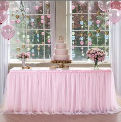 Suppromo 6ft Pink Tulle Table Skirt Baby Shower Tablecloth For Rectangle Tables Or Round Tables Pink Ruffle Tutu Table Skirts Desk Skirt For Princess $10Avondale, AZ