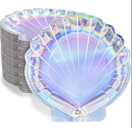 Jowgut 100 Pieces Mermaid Paper Plates, 9 Inch Seashell Plates For Party, Shell Shaped Disposable Iridescent Containers For Holographic Party Supplies$12Avondale, AZ