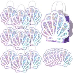 Locmeo 12 Pack Sea Shell Gift Bags Mermaid Goodie Bags Party Favor Iridescent With Handle For Under The Sea Party Summer Ocean Beach Birthday Wedding $10Avondale, AZ