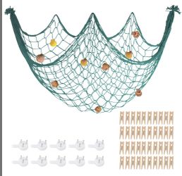 80x40 Inch Decorative Fishing Net W/Shells & Clips, 3mm Thickness Aqua Natural Cotton Large Photo Hanging Fishnet, Wall Party Decorations For Nautical$8Avondale, AZ