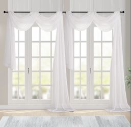 Chyhomenyc Ivory Sheer Scarf Valances For Windows 216 Inch Extra Long, Window Scarf Drapes Rod Pocket Backdrop For Wedding Arch Draping/Party/Canopy B$12Tolleson, AZ